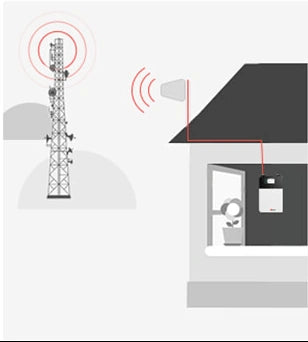 1. The outdoor antenna picks up the signal from the nearest cell tower and sends it to the booster.