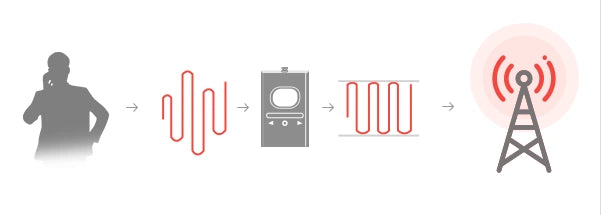 1. The outdoor antenna picks up the signal from the nearest cell tower and sends it to the booster.