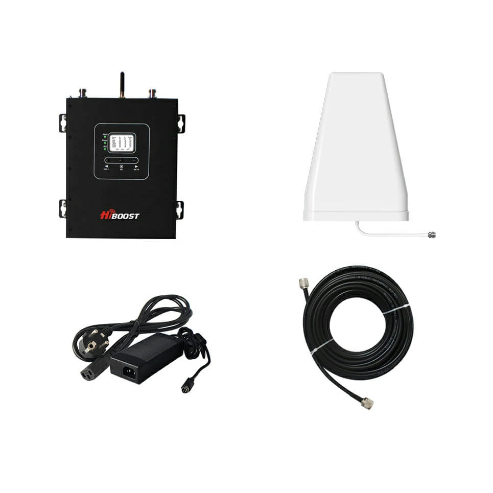HiBoost Hi23-3S is a powerful professional mobile signal amplifier designed to cover large areas of houses, office buildings, supermarkets, hospitals, airports, etc. with a perfect signal.